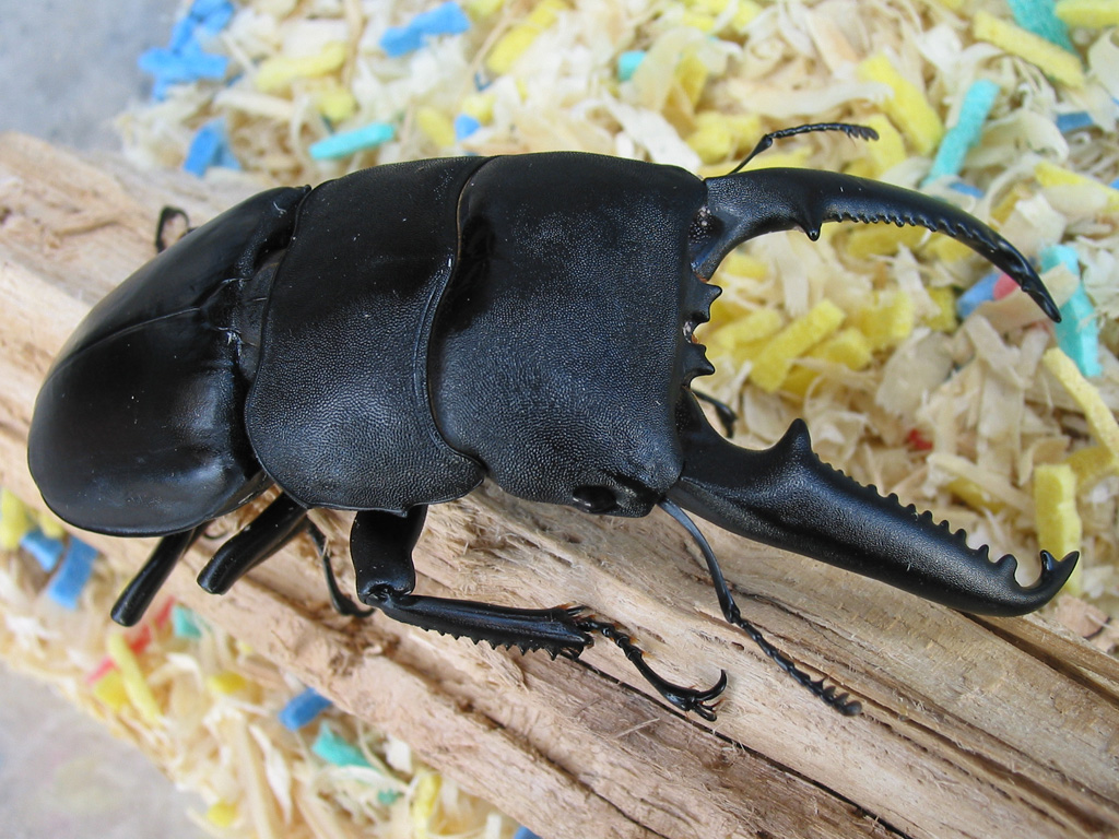クワガタ種の中では一番大アゴが発達する種類で、特にフローレス島産は最大長120mmまでになります。