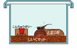 5.エラフスホソアカクワガタの せいちゅうを いっぴきだけ いれます。